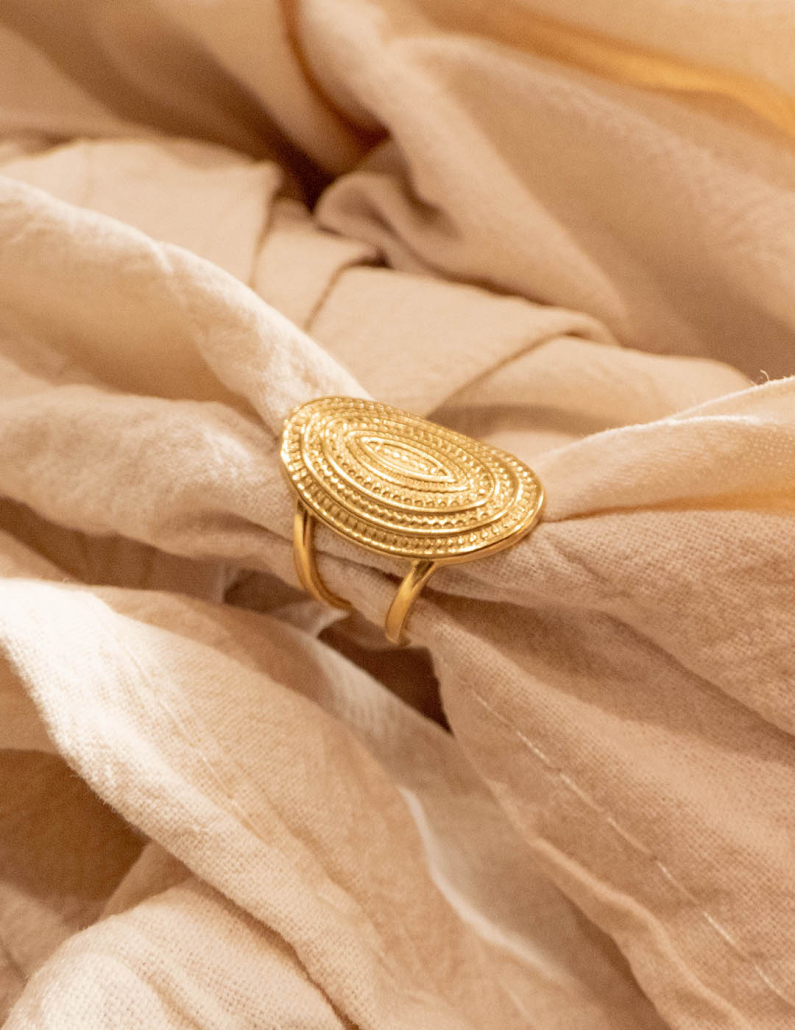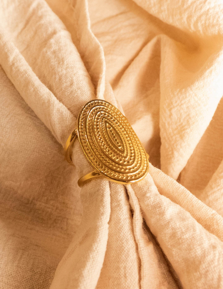 Descubre la elegancia atemporal con nuestro anillo de acero inoxidable con baño de oro ajustable. Este refinado accesorio combina la durabilidad del acero inoxidable con el resplandor cálido del baño de oro, creando una joya que perdura en el tiempo con un toque de lujo.