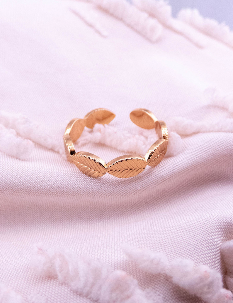Captura la belleza efímera con nuestro anillo en forma de flor, forjado en acero y adornado con un cautivador baño de oro. Un toque romántico y encantador para tu colección de joyas.