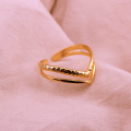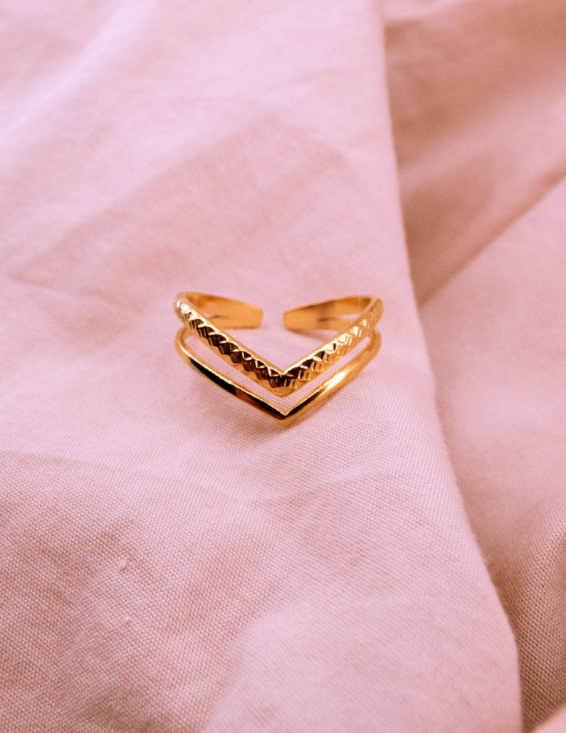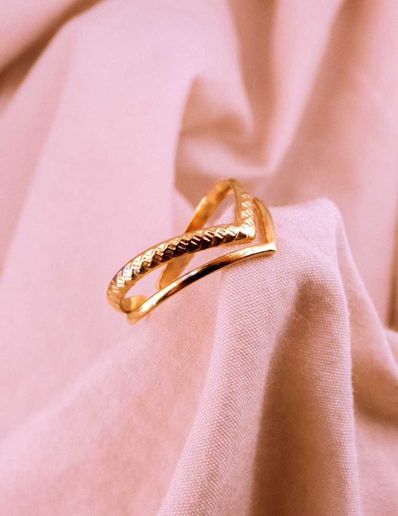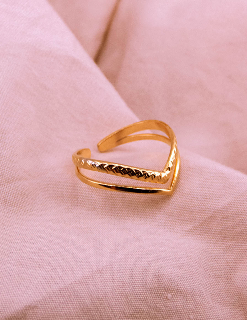 Experimenta la dualidad del estilo con nuestro anillo de acero, elegantemente bañado en oro. Su diseño doble, con líneas entrelazadas, simboliza la conexión y armonía. Este anillo versátil combina resistencia con refinamiento, creando un accesorio que resalta tu individualidad mientras añade un toque de lujo a tu look diario.