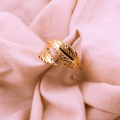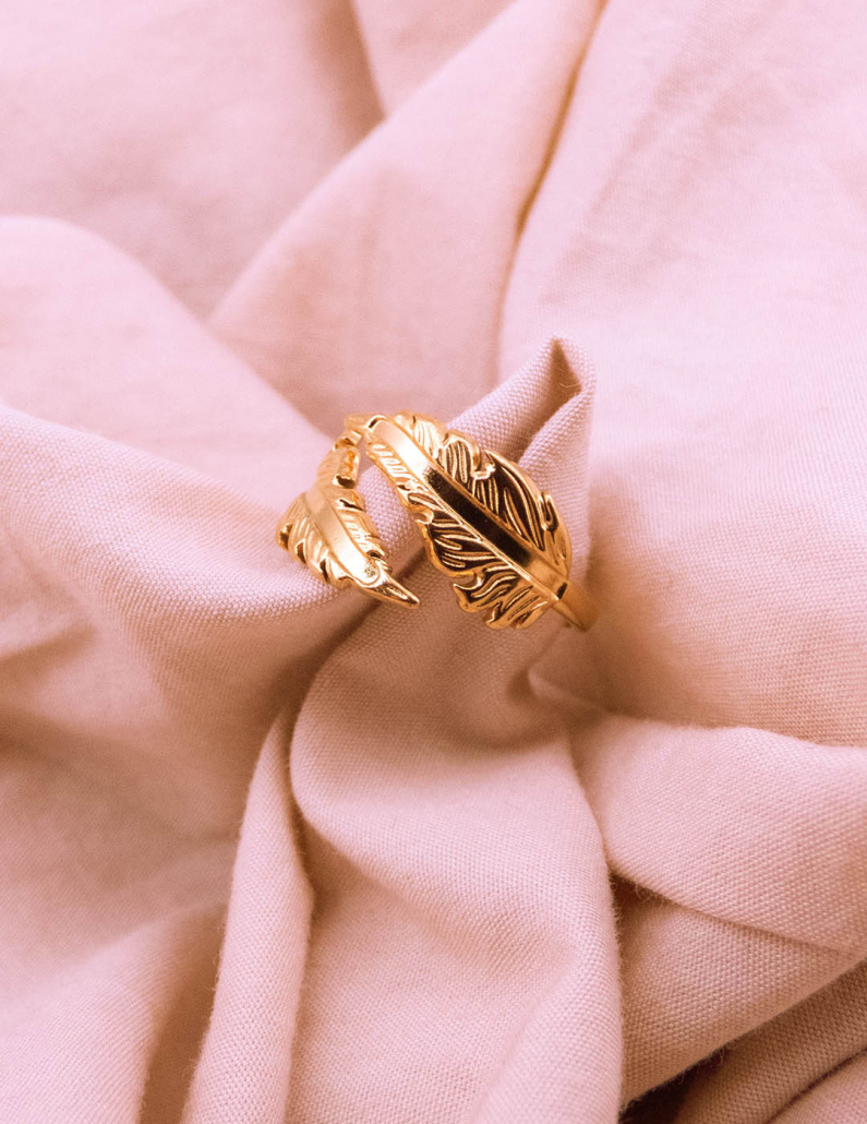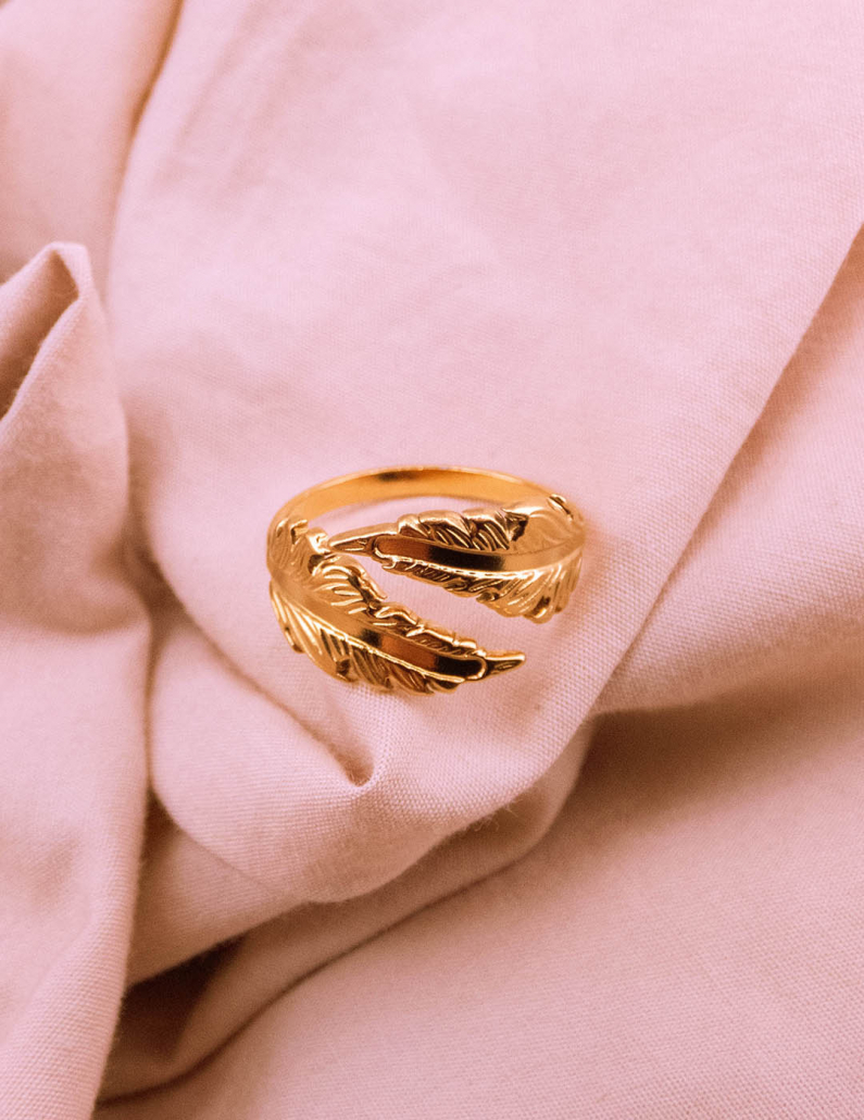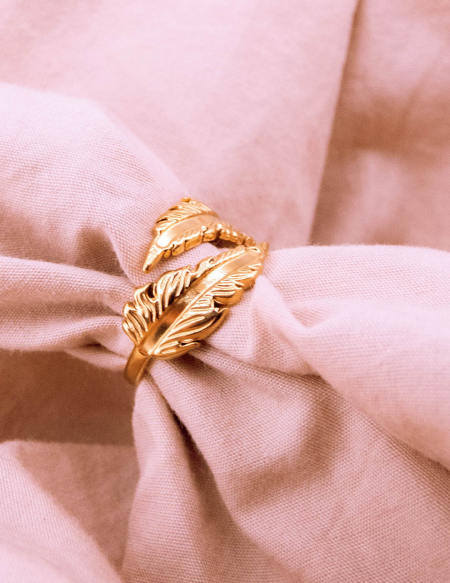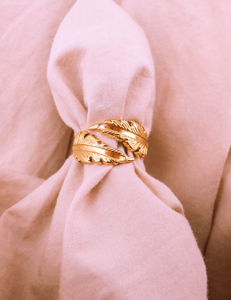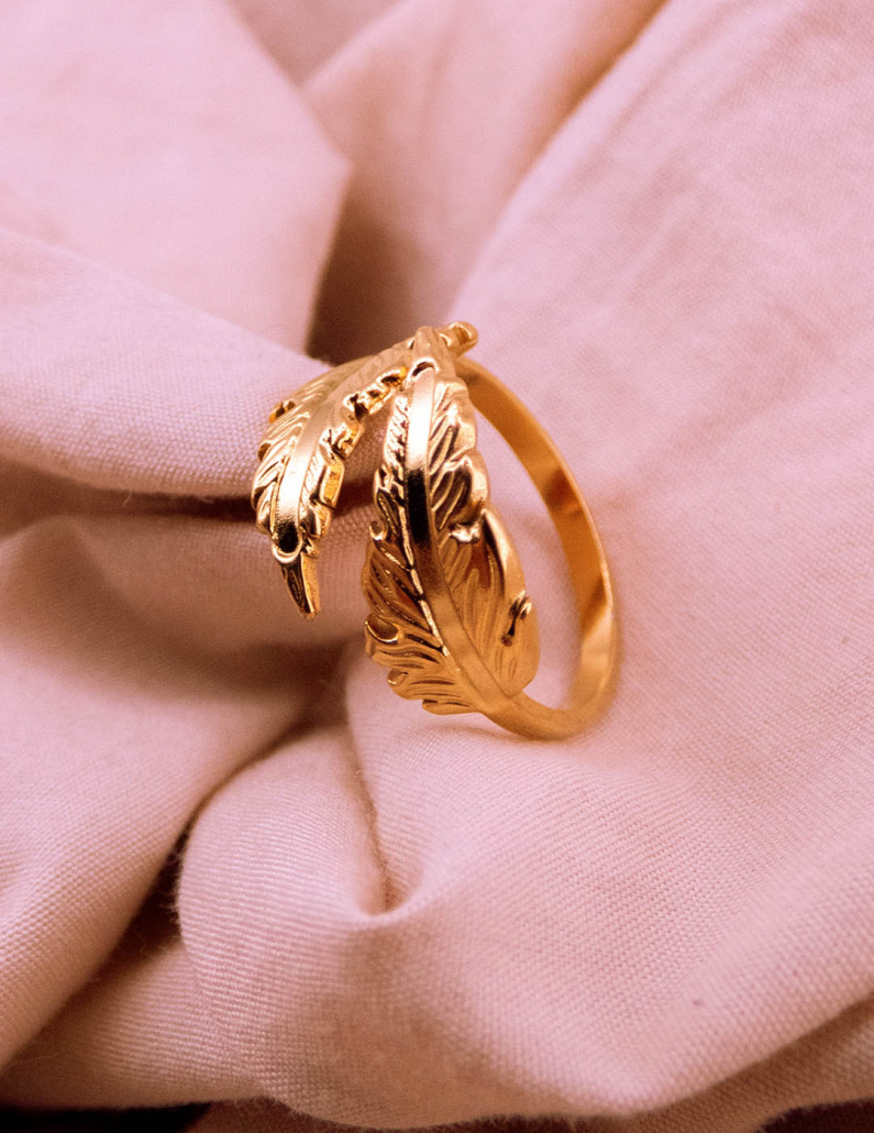 Transforma tu estilo con nuestro anillo inspirado en la naturaleza, con una exquisita forma de hoja. Este anillo de acero resistente, cuidadosamente bañado en oro, captura la delicadeza de la flora con detalles finamente esculpidos. Lleva contigo la elegancia botánica en cada ocasión y haz una declaración de moda que refleje tu conexión con la belleza natural.
