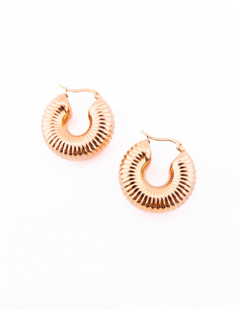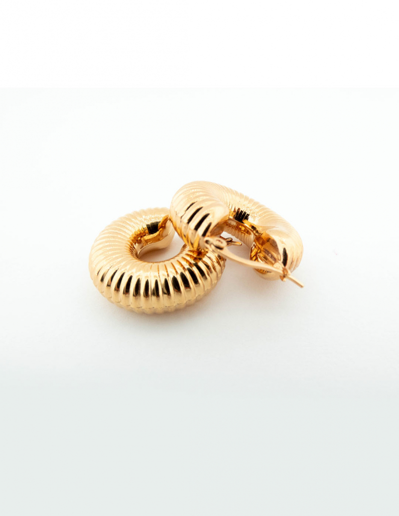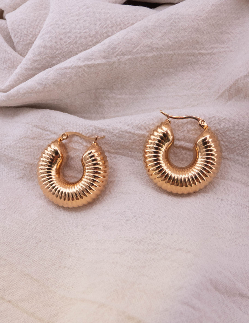 La simplicidad se encuentra con el lujo en estos pendientes que combinan la solidez del acero con la elegancia del baño de oro. Una elección elegante para realzar tu belleza de manera sutil y distintiva.