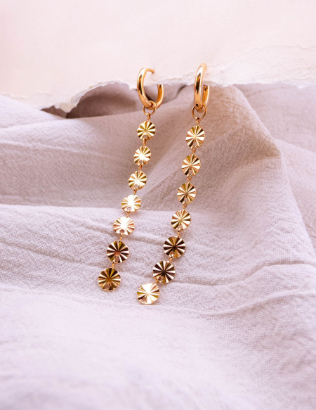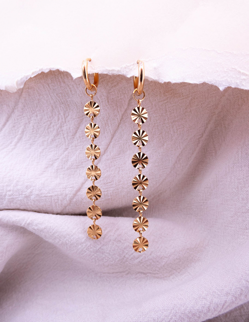 Descubre la armonía entre lo duradero y lo lujoso con estos pendientes. Su diseño minimalista y el baño de oro crean una pieza que ilumina tu rostro con un resplandor sofisticado.