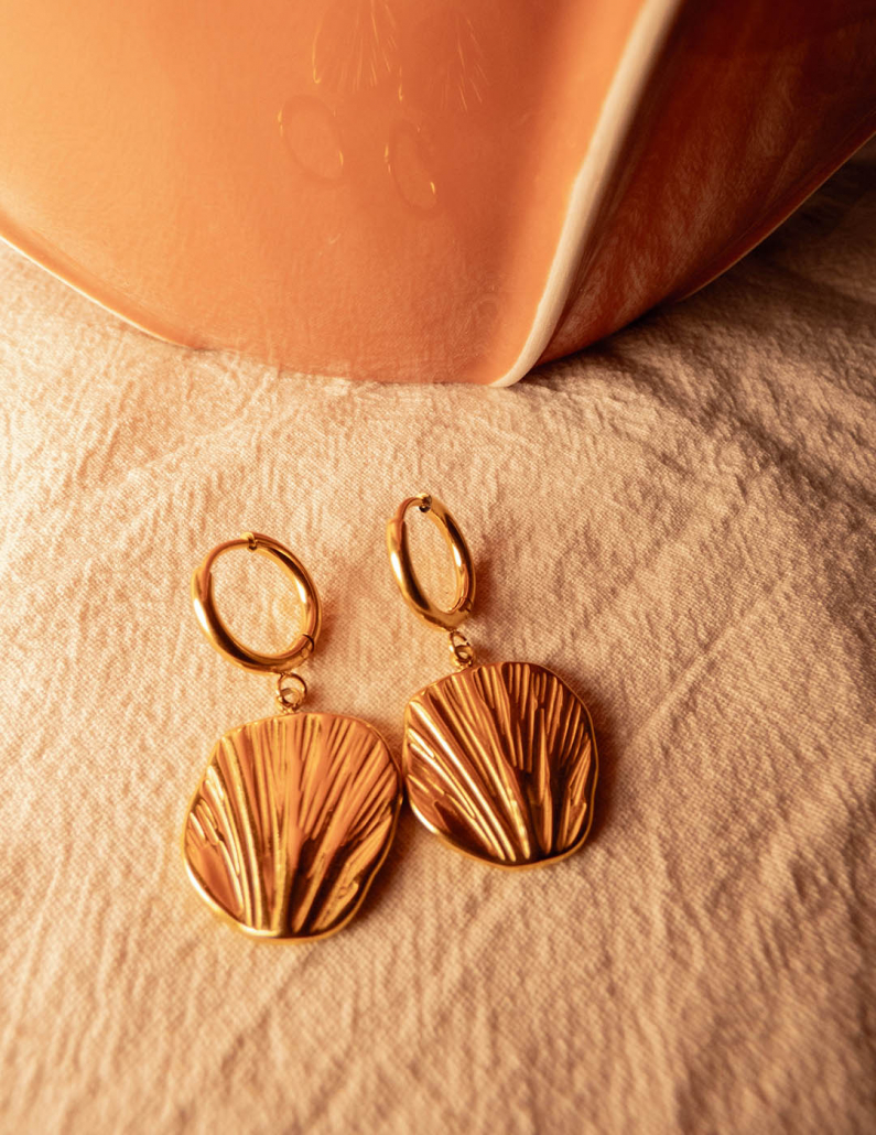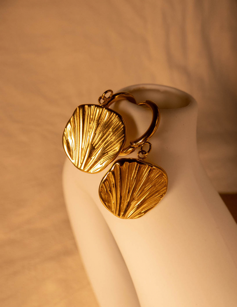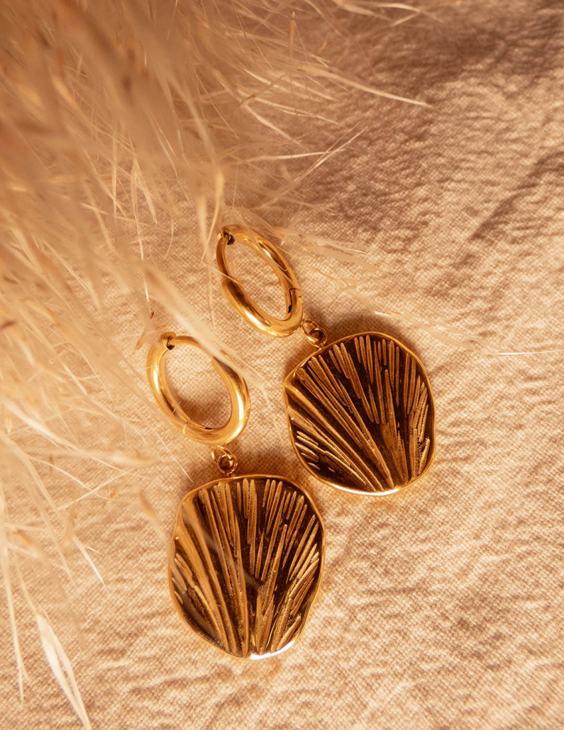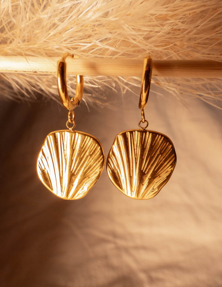 Realza tu look con estos pendientes que combinan la durabilidad del acero con el lujo del baño de oro. Su diseño atemporal y versatilidad los convierten en un complemento imprescindible para cualquier ocasión.