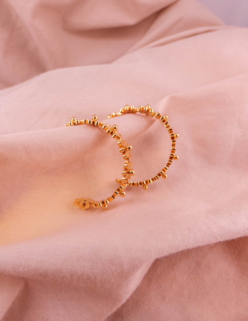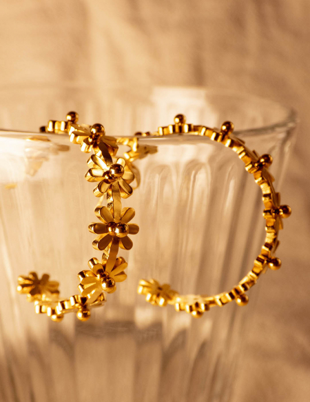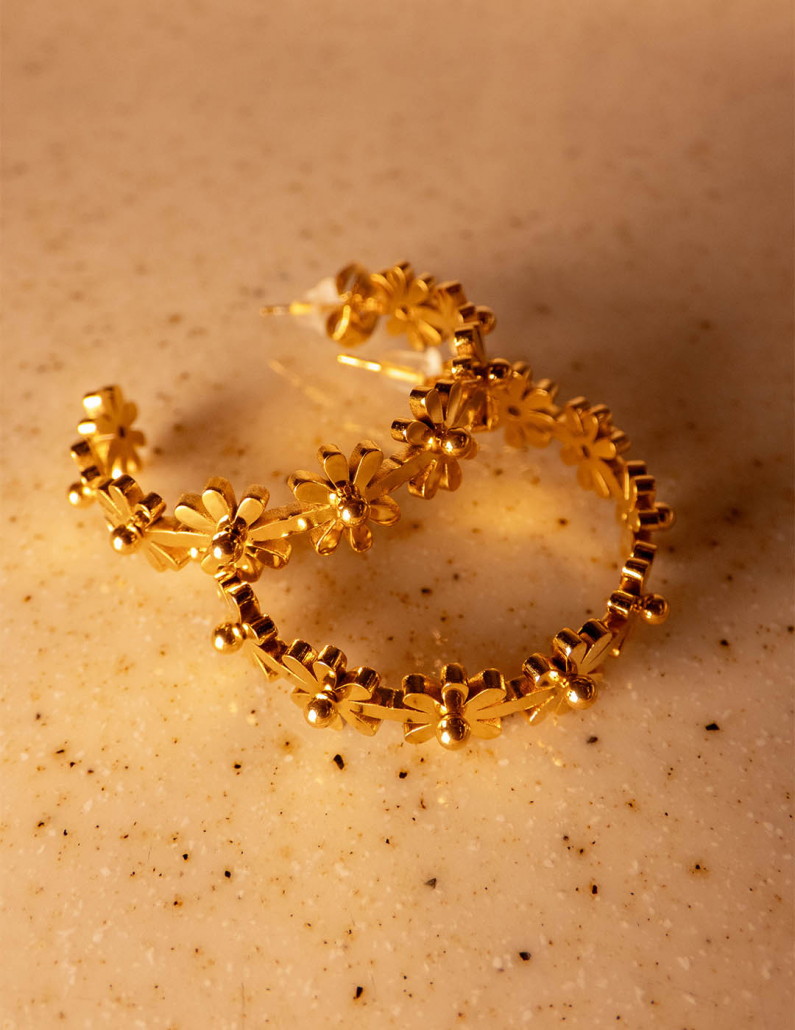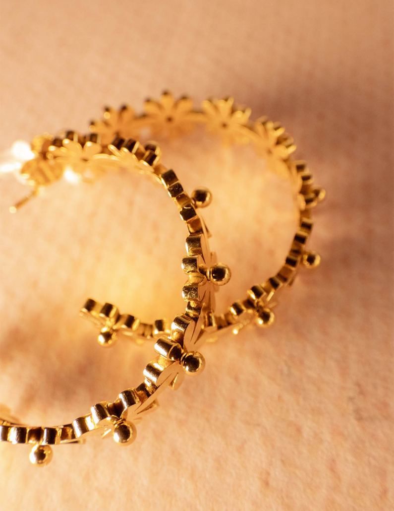 Realza tu look con estos pendientes que combinan la durabilidad del acero con el lujo del baño de oro. Su diseño atemporal y versatilidad los convierten en un complemento imprescindible para cualquier ocasión.