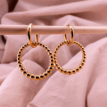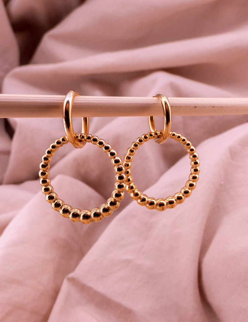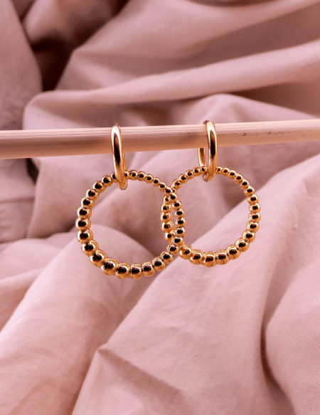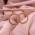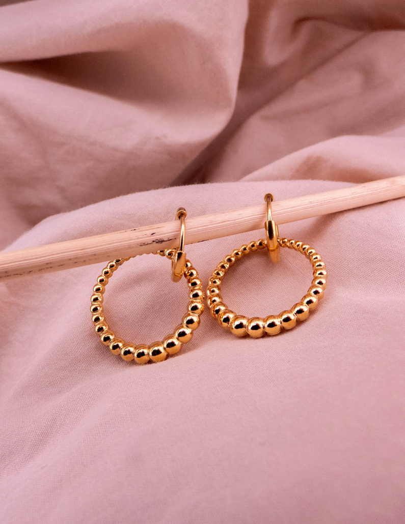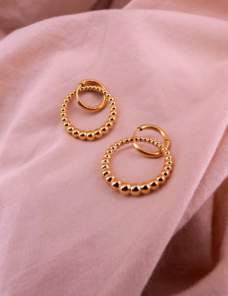 Estos pendientes destacan por su construcción duradera en acero y su baño de oro reluciente. Ligeros y cómodos, son la elección perfecta para un toque de sofisticación en cualquier ocasión.