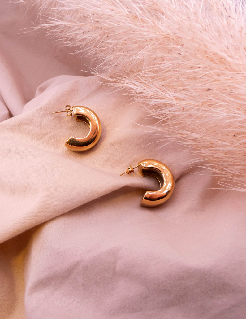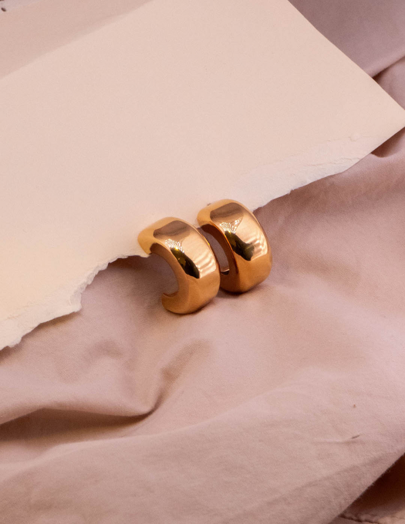 Estos pendientes destacan por su construcción duradera en acero y su baño de oro reluciente. Ligeros y cómodos, son la elección perfecta para un toque de sofisticación en cualquier ocasión.