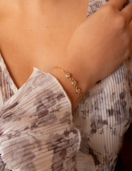 Los detalles refinados de nuestra pulsera, desde el brillo del baño de oro hasta la comodidad del cierre seguro, demuestran nuestro compromiso con la excelencia. Una pieza de joyería que va más allá de la estética, ofreciendo una experiencia única.
