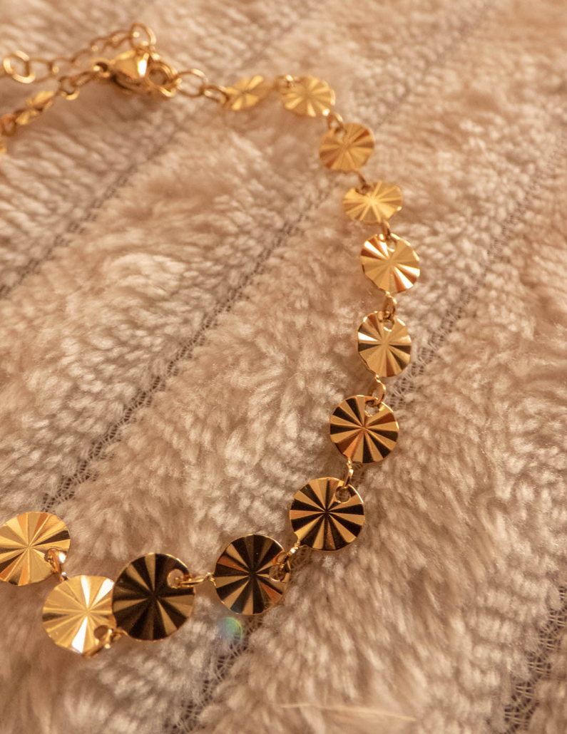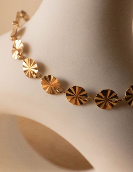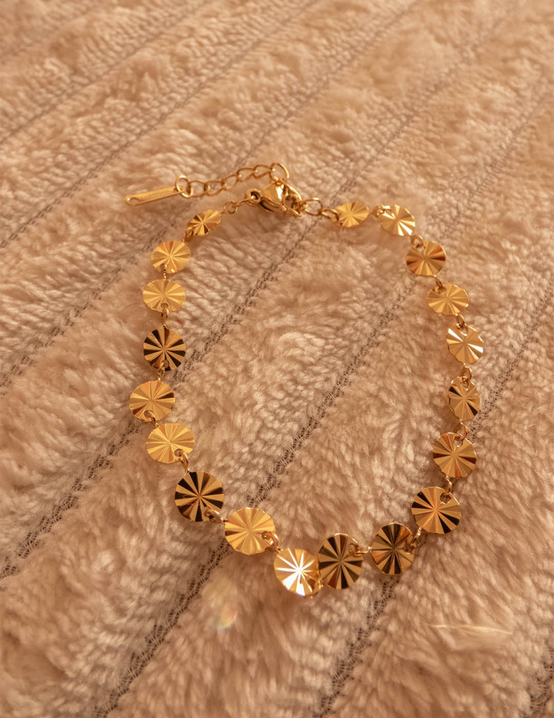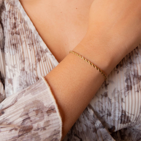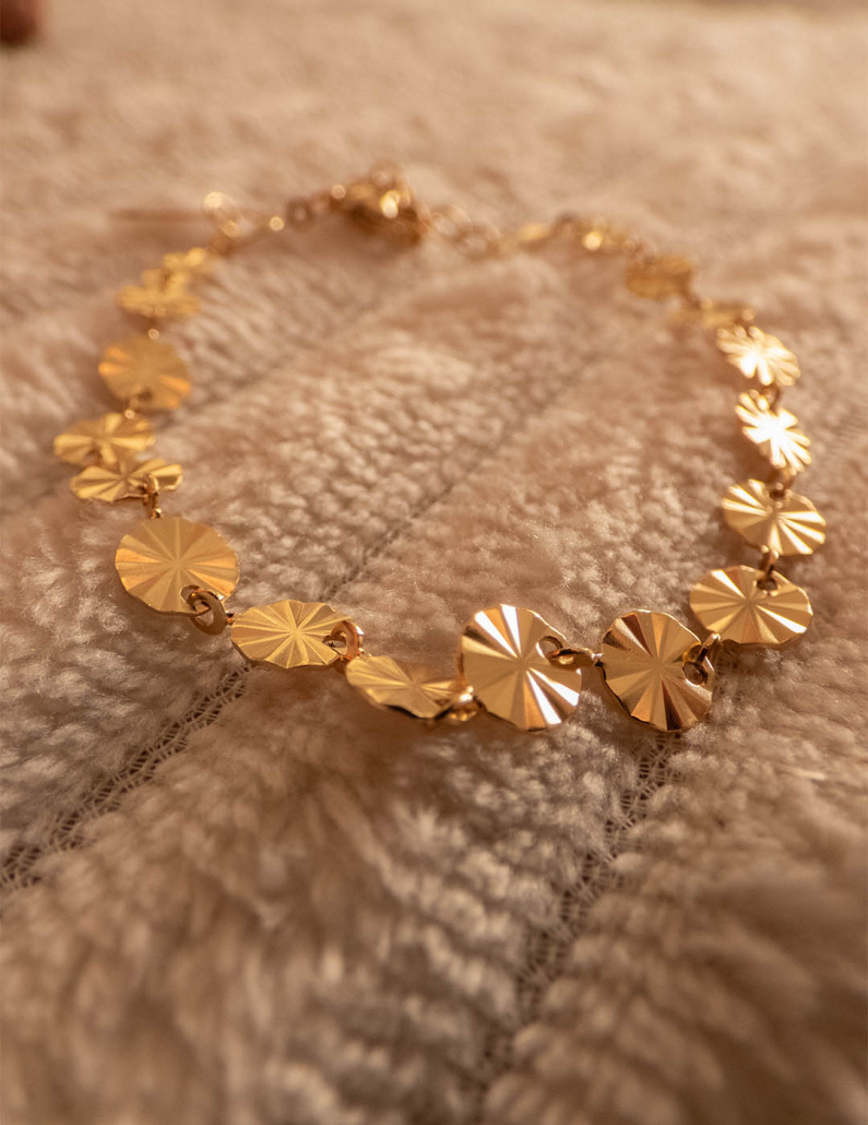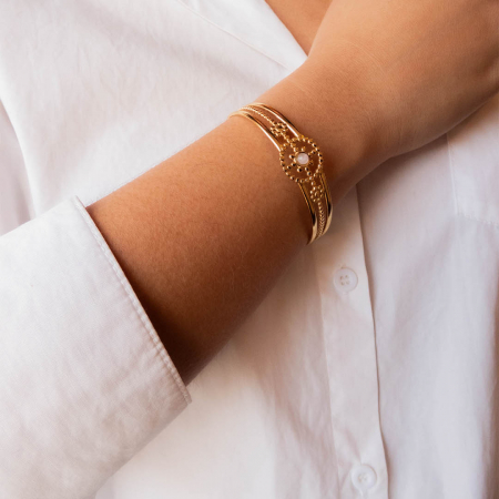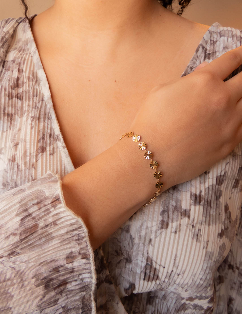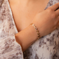 Confeccionada en acero inoxidable y adornada con un cautivador baño de oro, nuestra pulsera combina la durabilidad con un diseño excepcionalmente elegante. Sea para una noche especial o para destacar en tu día a día, esta joya es la expresión perfecta de refinamiento.