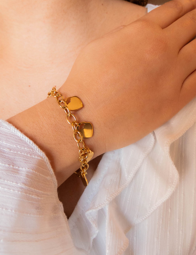 Descubre la sofisticación de nuestra pulsera de acero inoxidable con baño de oro. Su diseño elegante y resistente se convierte en un complemento esencial para cualquier ocasión, añadiendo un toque de lujo sutil a tu estilo cotidiano.
